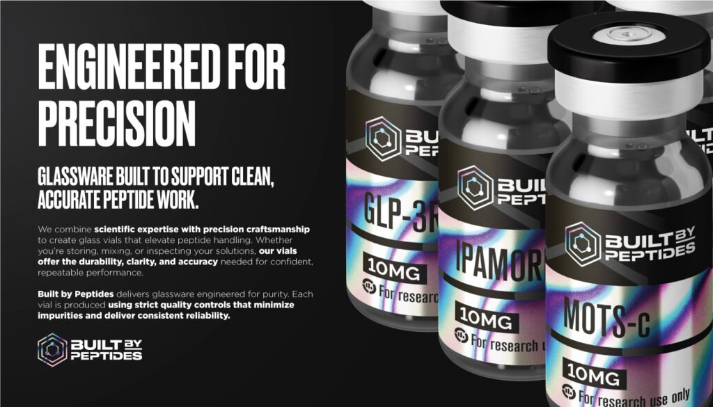 Built By Peptides focuses on lab-friendly packaging and batch consistency. Peptides are supplied as lyophilized powder in glass vials to support accurate, repeatable laboratory work.