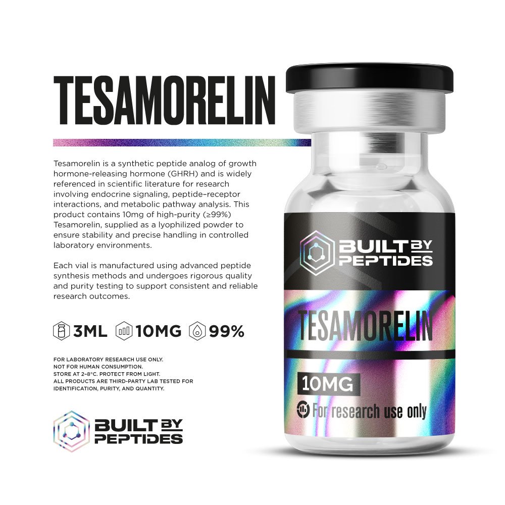 Tesamorelin is a synthetic analog of Growth Hormone-Releasing Hormone (GHRH) and is commonly used in advanced metabolic and endocrine models.